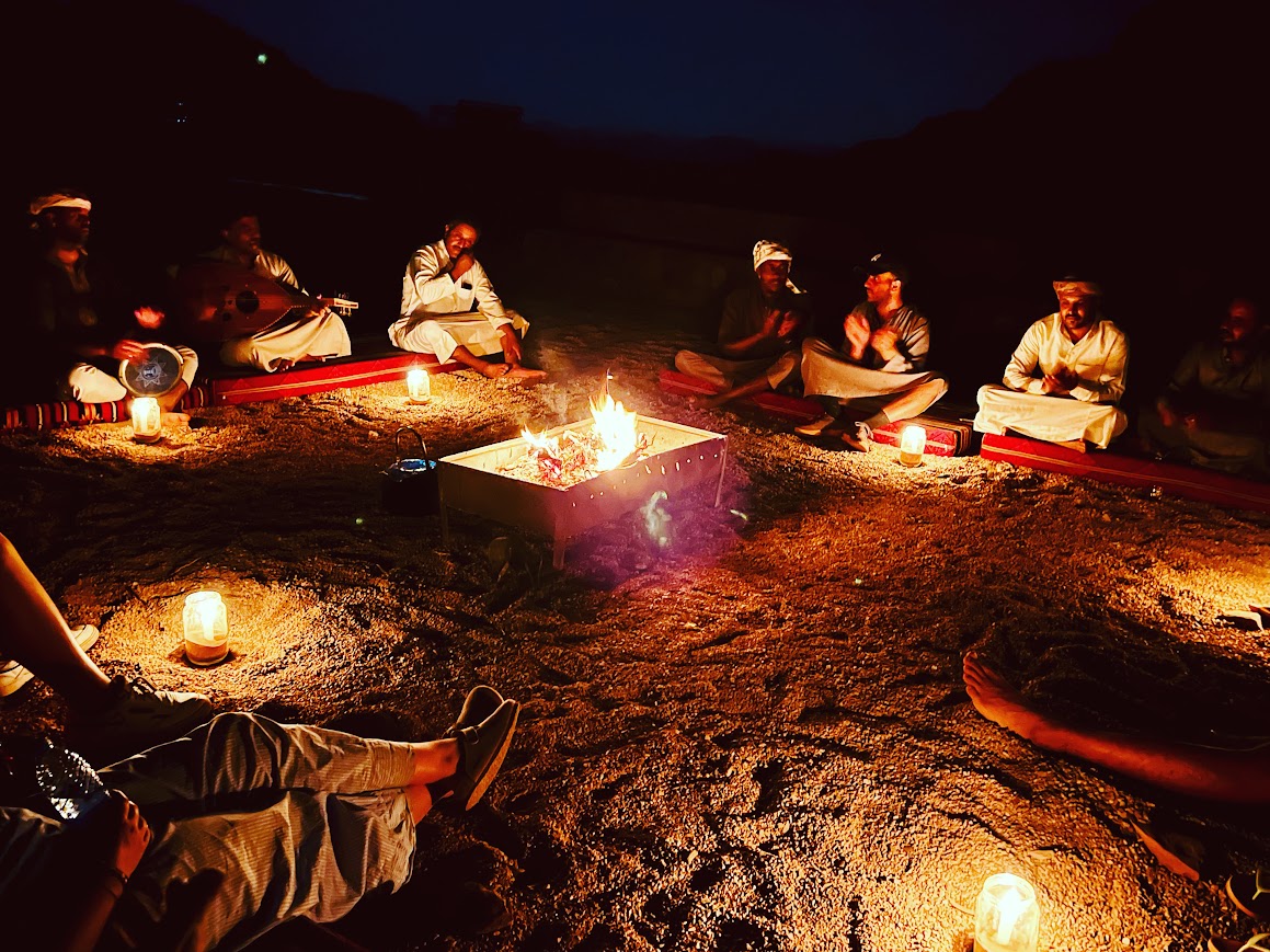 After Diner we make evening entertainment and Tradition Bedouin Music while you enjoying the campfire with the Bedouin Tea and Watching the